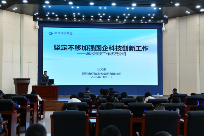 汪義強部長圍繞“堅定不移加強國企科技創(chuàng)新工作”主題,從國家層面對科技創(chuàng)新領域的政策法規(guī)進行了深入剖析。他詳細介紹了深圳環(huán)水集團通過構建“1-3-N(n)”科技創(chuàng)新組織架構體系,配套制定一系列科技創(chuàng)新制度,并搭建多個科研平臺,有效促進了科技成果的轉化,明顯提升了企業(yè)收入。深圳環(huán)水集團在供排水、水環(huán)境治理、固廢處理處置等領域積累了大量知識產權,榮獲了國家級、省市及行業(yè)協(xié)會等多項榮譽獎項,科技創(chuàng)新成效顯著。
