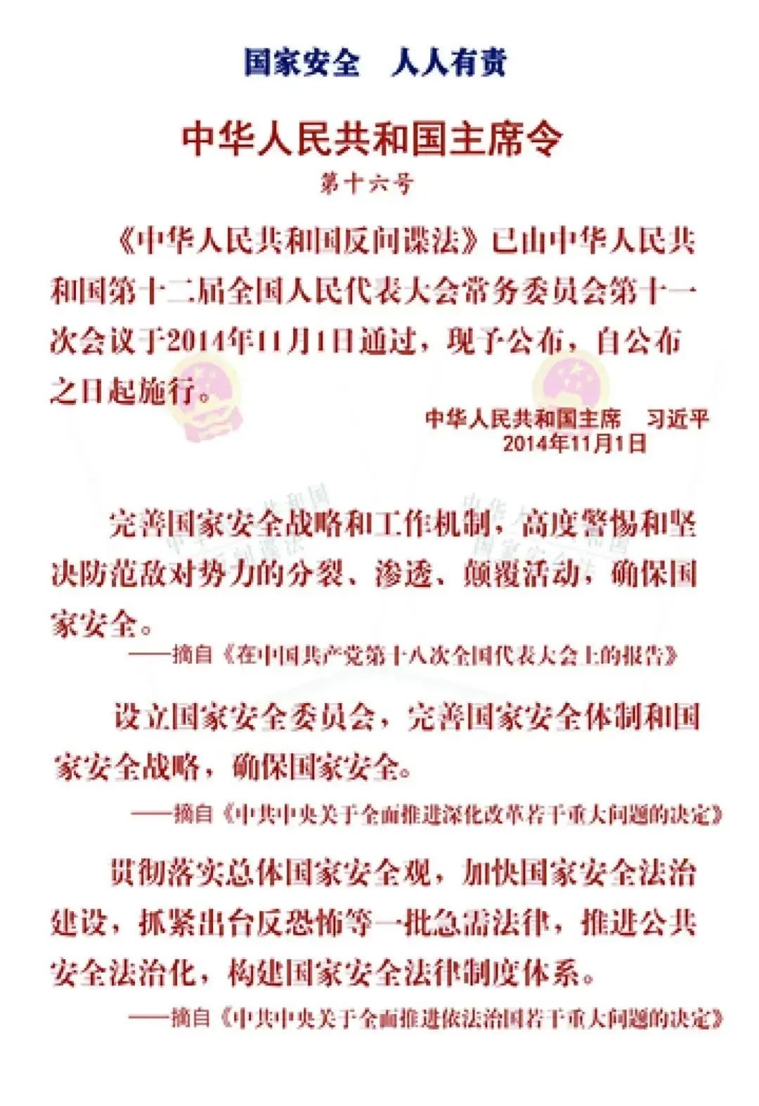 國家安全無小事。作為國民的一份子,我們更應(yīng)該提高自己的警惕和防范意識,認真學(xué)習(xí)《中華人民共和國反間諜法》相關(guān)知識,為維護國家安全做出努力,為維護社會的長治久安做出貢獻。